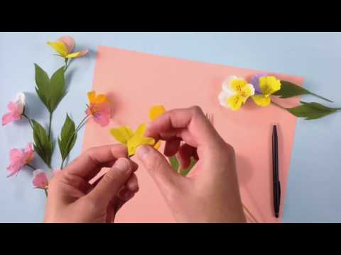 Papetal - How to make a crepe paper Pansy - 60gsm Crepe Paper - Templates: https://goo.gl/mKAkxS Materials: 60GSM crepe paper from Carte-Fini, PVA glue, florist wire Notes: - To wrap florist wire, cut a strip of crepe paper at ...
