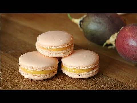 Passion Fruit Macarons - Fruit Macarons - Passion Fruit Macarons filled with passion fruit curd, and marshmallow frosting. They are tangy, tart, and sweet! Also in this video, per requests, I show you the ...