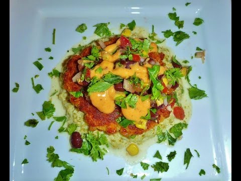 Corn Tamale Cakes }}- I've recreated my favorite dish at The Cheesecake Factory: the Sweet Corn Tamale Cakes on a bed of tomatillo cream sauce and topped with a tomato, corn, ...