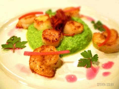 Pan-seared scallop with pea puré - Gordon Ramsay MasterChef S06E09 - Scallops And Pea Puree And Pancetta - If you liked this clip check out the rest of Gordon's channels: http://www.youtube.com/gordonramsay http://www.youtube.com/thefword ...