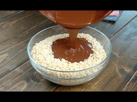 Pour the chocolate over puffed rice: a super delicious recipe - Puffed Rice Chocolate Bar - A really tasty recipe ready in just a few minutes! All you need is puffed rice and some chocolate, Here's how to make it!